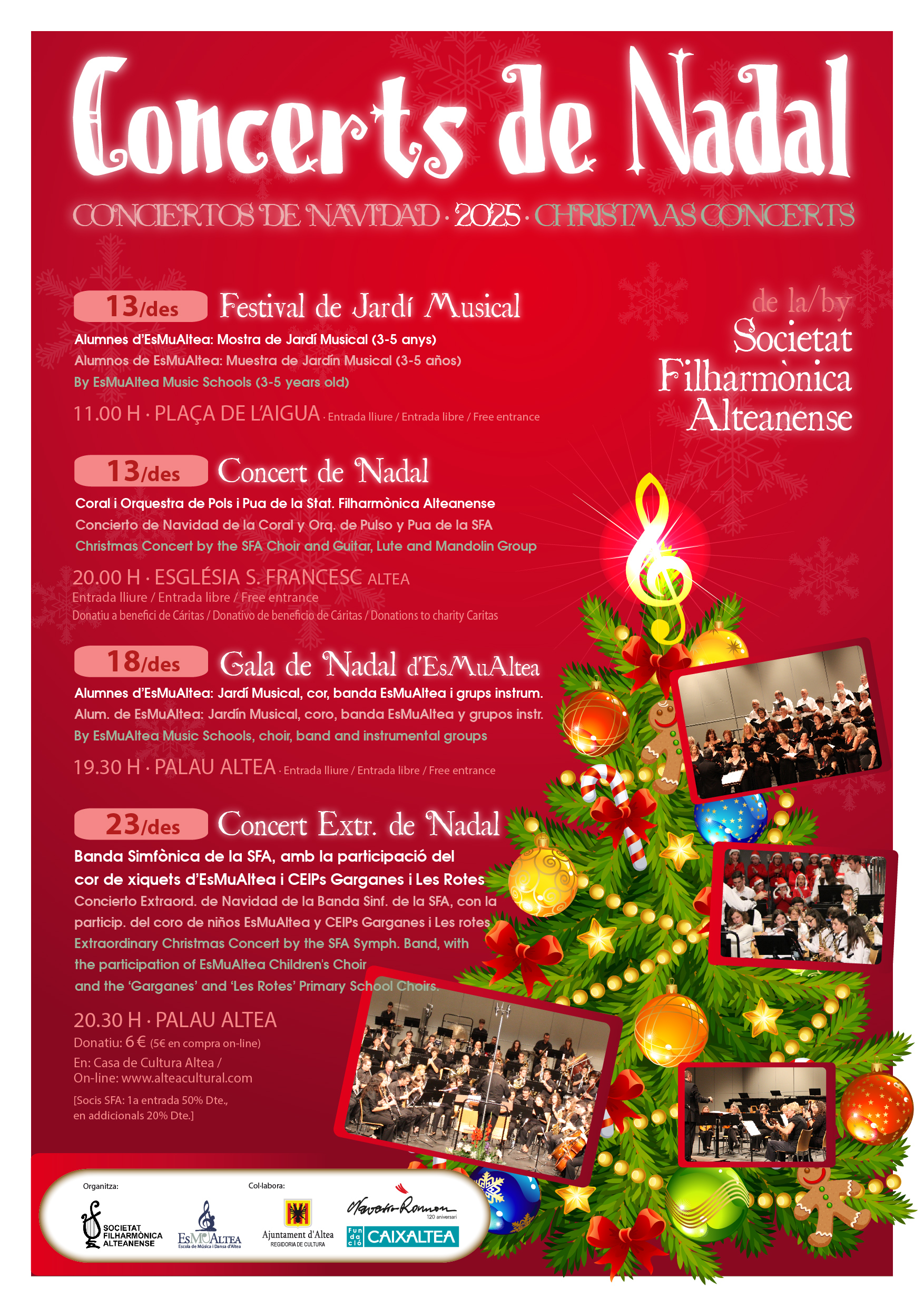Programació de Nadal 2025 – SFA In Banda Sinfónica, Coro, News, Orquesta Pulso y Púa, SFA by sfaltea.com-admin06/12/2025Leave a Comment Altea, del 13 al 23 de desembre 2025 Veure / descarregar CIRCULAR PER A SOCISDescarregar No event found!